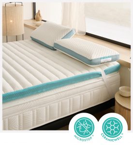 El topper Viscospring de Balans Plus destaca por su adaptabilidad, transpirabilidad y durabilidad, gracias a su núcleo formado por una doble capa de fibras de poliéster unidas a la Visco Innogel®, la espuma HR y el sistema de nanomuelles ensacados.